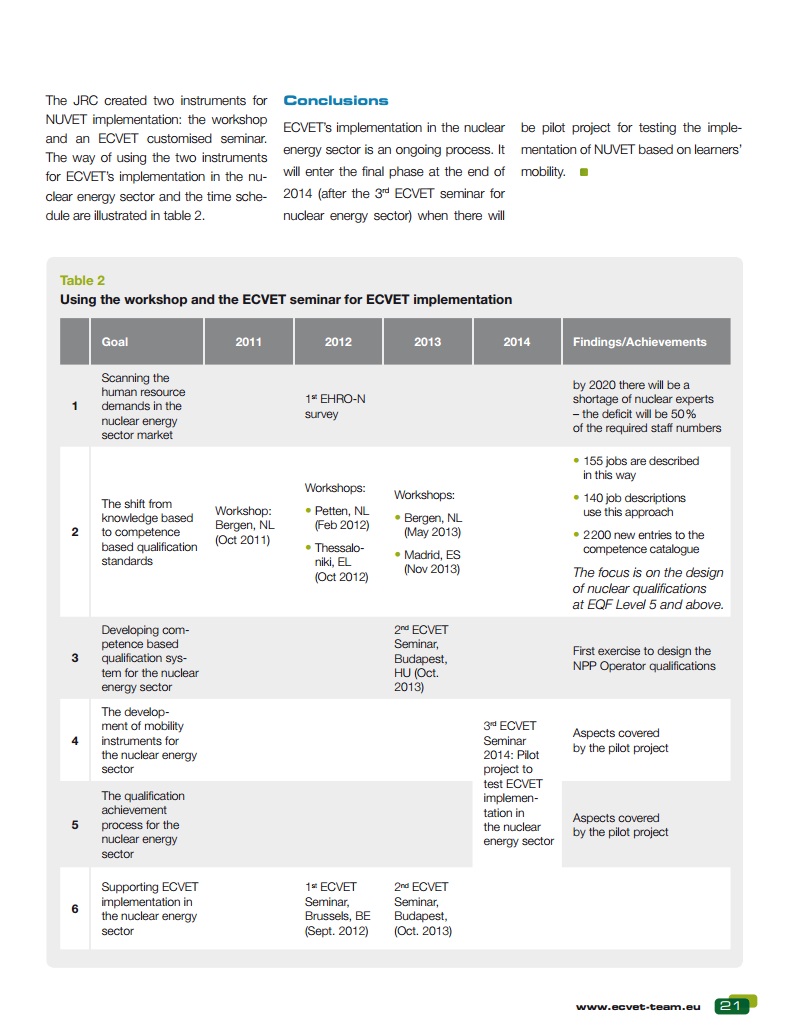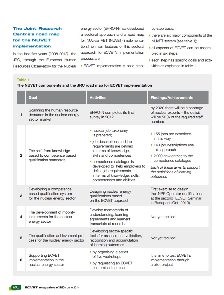 THE ROAD MAP FOR ECVET IMPLEMENTATION IN THE NUCLEAR ENERGY SECTOR